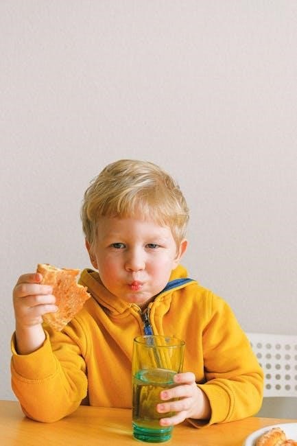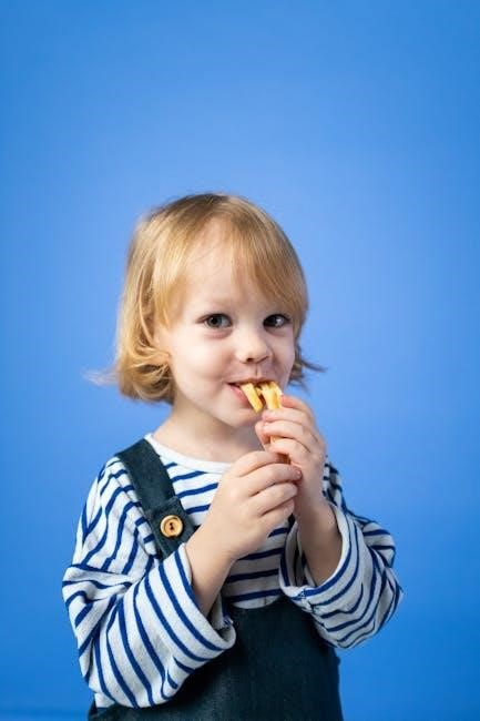 The Very Hungry Caterpillar food printables introduce children to various food categories, aligning with educational goals. Activities such as sorting games and matching exercises help kids identify fruits, vegetables, proteins, and dairy products. The caterpillar’s diet in the story showcases a variety of foods, making it an engaging way to teach about food groups. These printables often include colorful illustrations of foods, encouraging children to learn about their nutritional benefits. Interactive worksheets allow kids to categorize foods, enhancing their understanding of balanced diets. This section focuses on using the caterpillar’s food journey to teach children about the diversity of food options and their roles in maintaining health. It’s a fun and interactive way to introduce essential nutrition concepts at an early age.